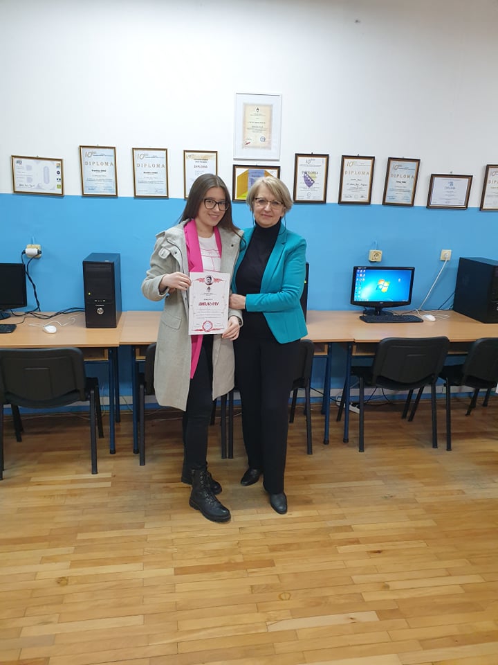 Ученица наше школе Тара Ђураш из IX4, освојила треће мјесто.
